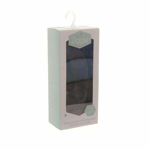 Elevate any outfit with these blue and grey Atlantic socks, designed to perfectly match Ziggle's popular Atlantic bib set and headbands. Made with a soft and comfortable cotton blend, these socks are gentle on baby's feet and easily stretch for quick and convenient dressing. Featuring ribbed tops to prevent slipping off and non-slip stars on the soles, these socks are ideal for little ones learning to walk and staying safe. Available in a range of trendy colors and presented in a stylish Ziggle box, they make for a perfect gift for babies aged 0-18 months. Plus, they're easy to care for - simply machine wash at 30 degrees and tumble dry on a cool setting.