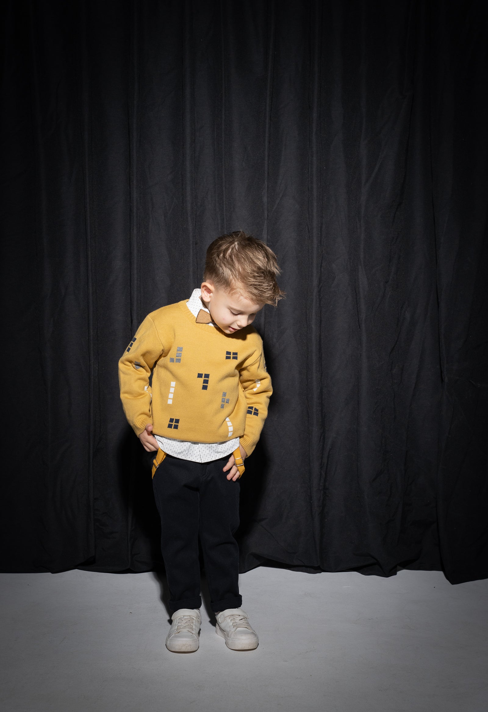 This charming boys' 3-piece set combines a mustard jumper, a crisp shirt, and navy trousers with a dapper dickie bow. Perfectly smart yet comfy, it’s ideal for little gentlemen ready to play and impress all day long.