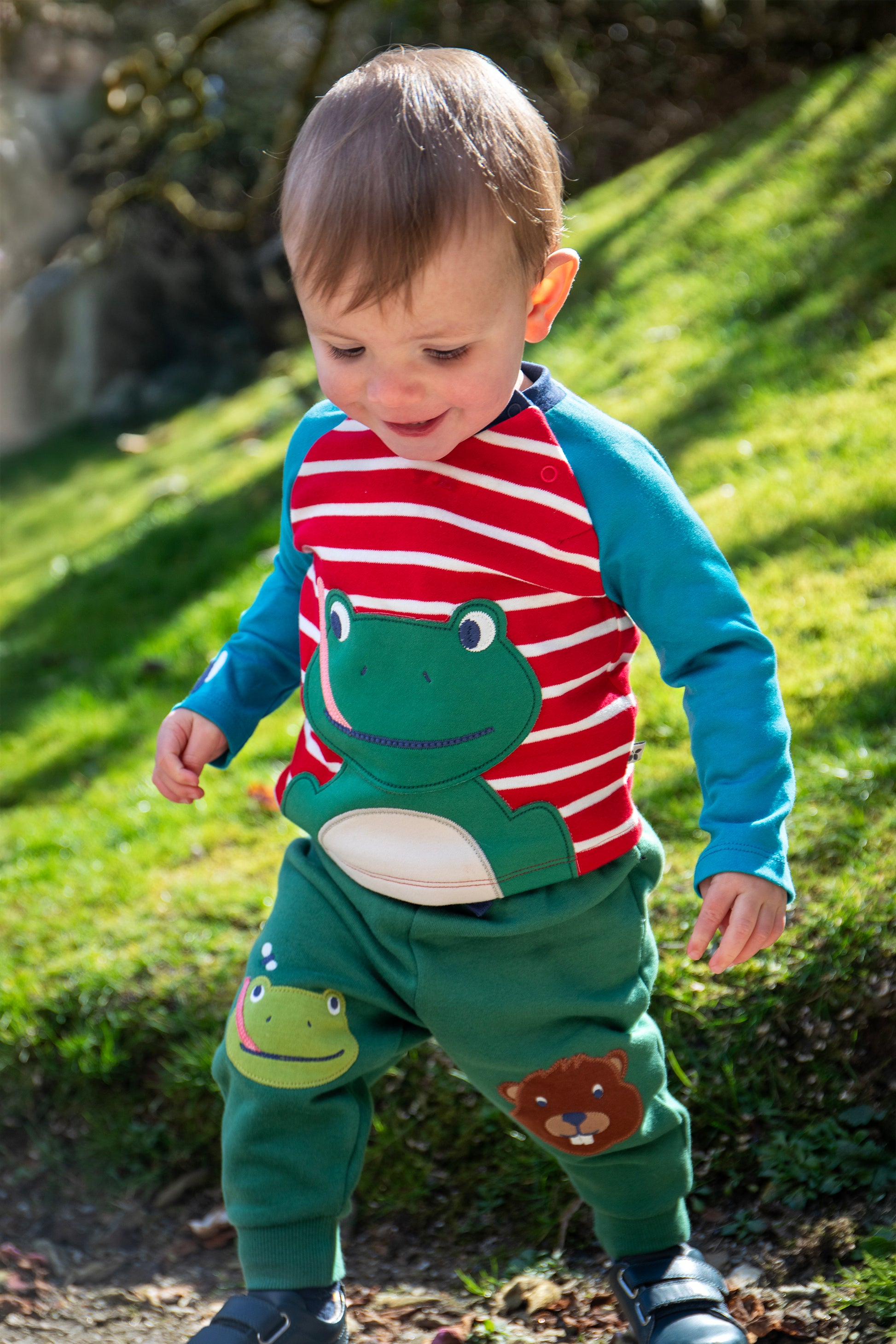 Add some fun to your little one’s wardrobe with this playful Boys Frog Top. Featuring bold red stripes and contrasting blue long sleeves, it’s perfect for active toddlers who love bright, cheerful clothes. The cute frog design adds a splash of personality, making it ideal for everyday adventures and playtime. Soft and comfy, this top keeps your boy cosy while he explores.