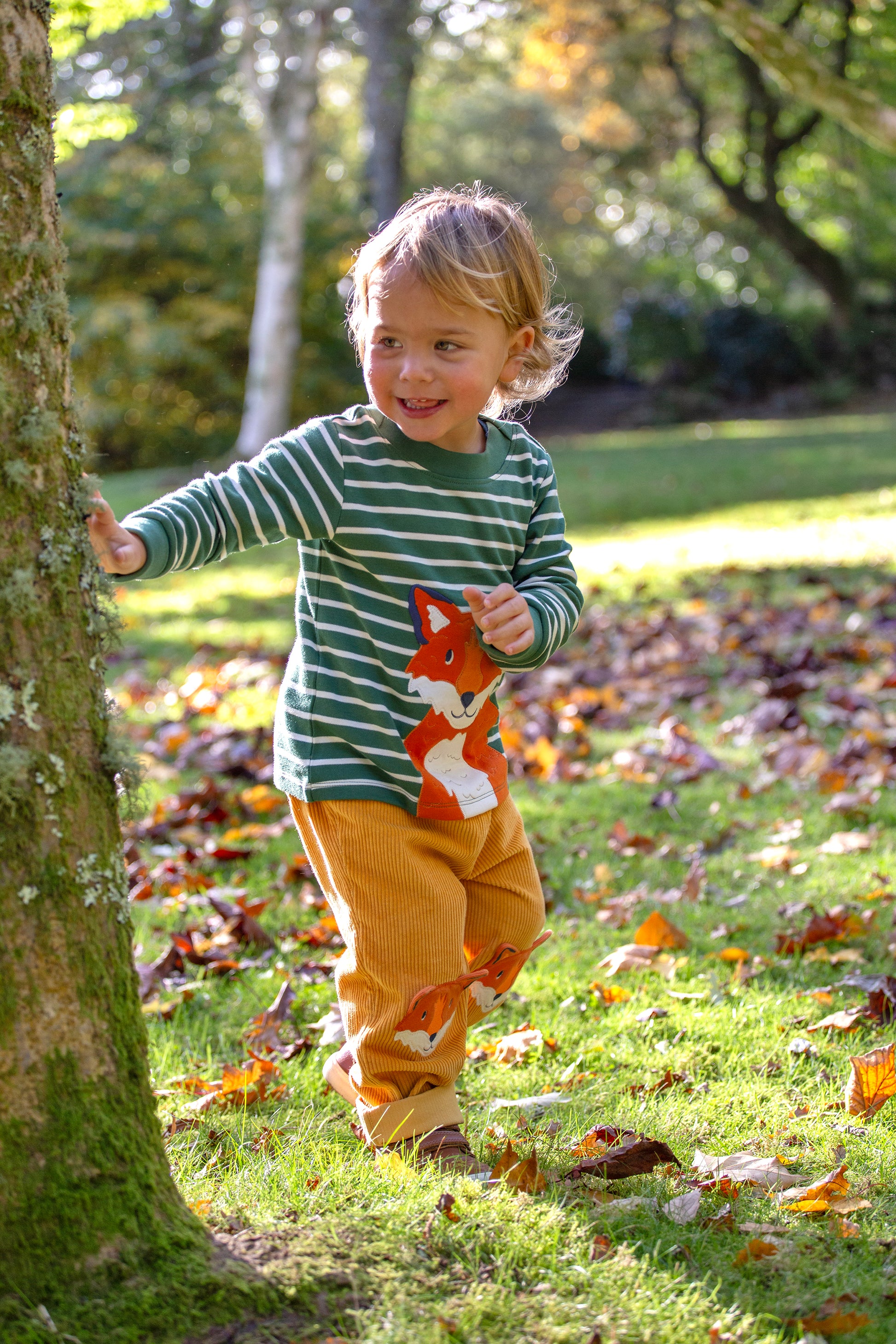 These cord trousers for baby and toddler boys bring a playful touch to everyday outfits with charming fox patches on the knees. Made from soft, durable fabric, they offer comfort and freedom for active little explorers. Perfect for adding a fun, woodland-inspired detail while keeping your child cosy all day long.