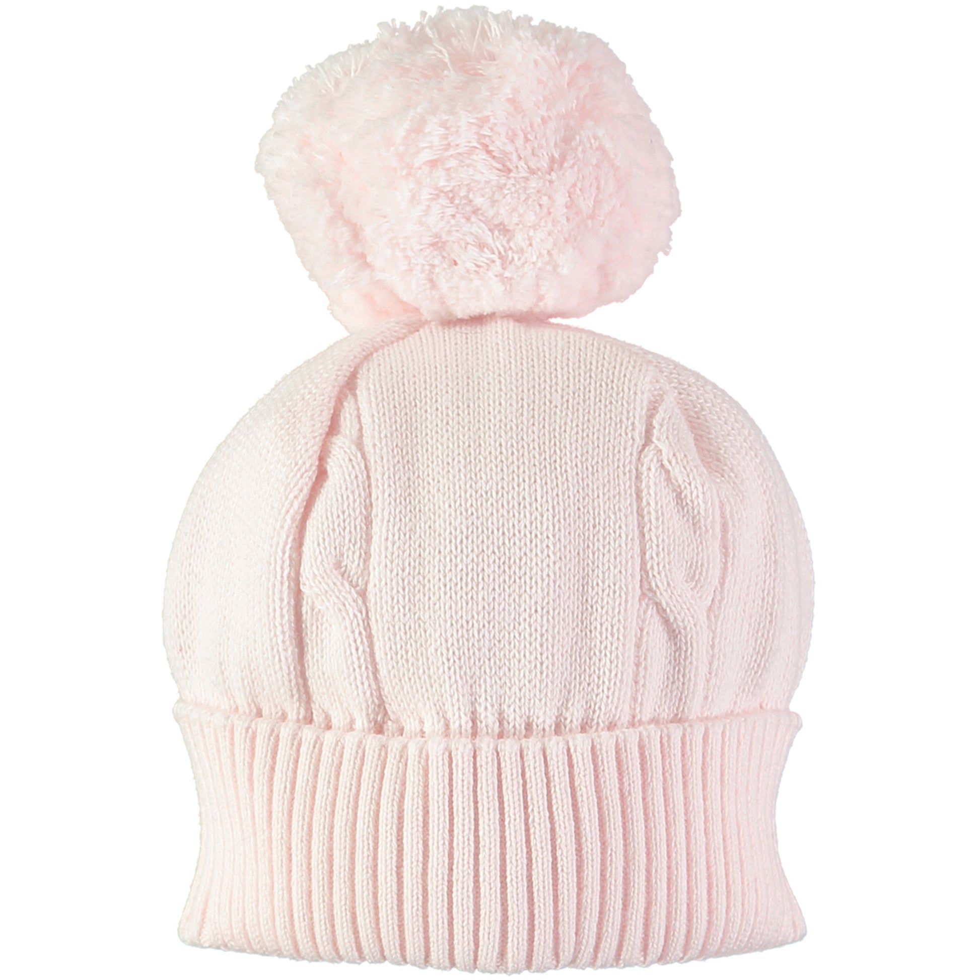 A true favourite and a "must have" for chilly winter days - this pale pink baby bobble hat has a turn-back rib and cable knit feature. This baby girl winter hat perfectly complements many pieces from the Autumn Winter Emile et Rose collection. Now available in larger sizes.