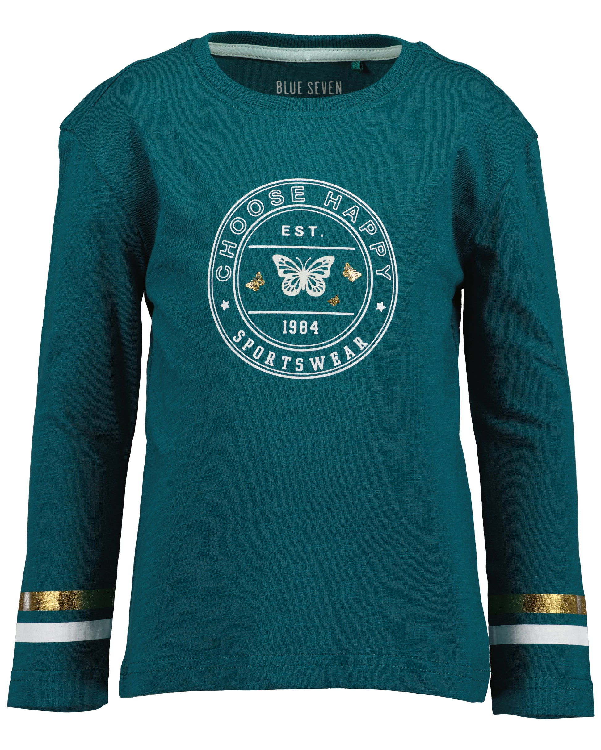 Get your little fashionista ready for any occasion with this Girls Long Sleeved Green Top. The white and gold details add a touch of glamour to this everyday piece. She'll stay stylish and comfortable all day long!