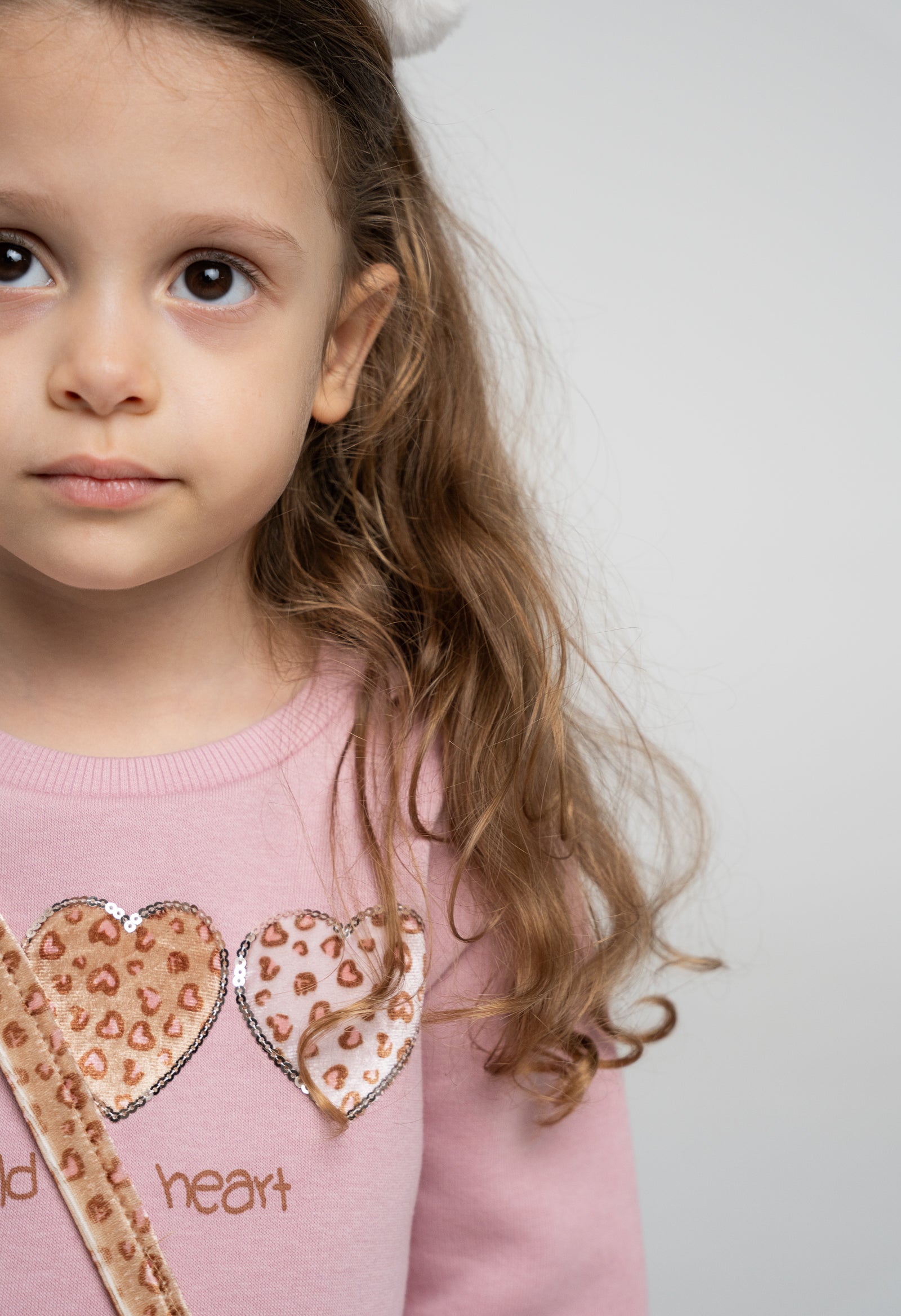 This adorable girls' outfit features a pink jumper decorated with charming hearts, paired with cosy brown cord trousers for all-day comfort. The look is completed with a cute heart-shaped handbag, adding a playful touch to her style. Perfect for keeping her warm and stylish during any adventure!